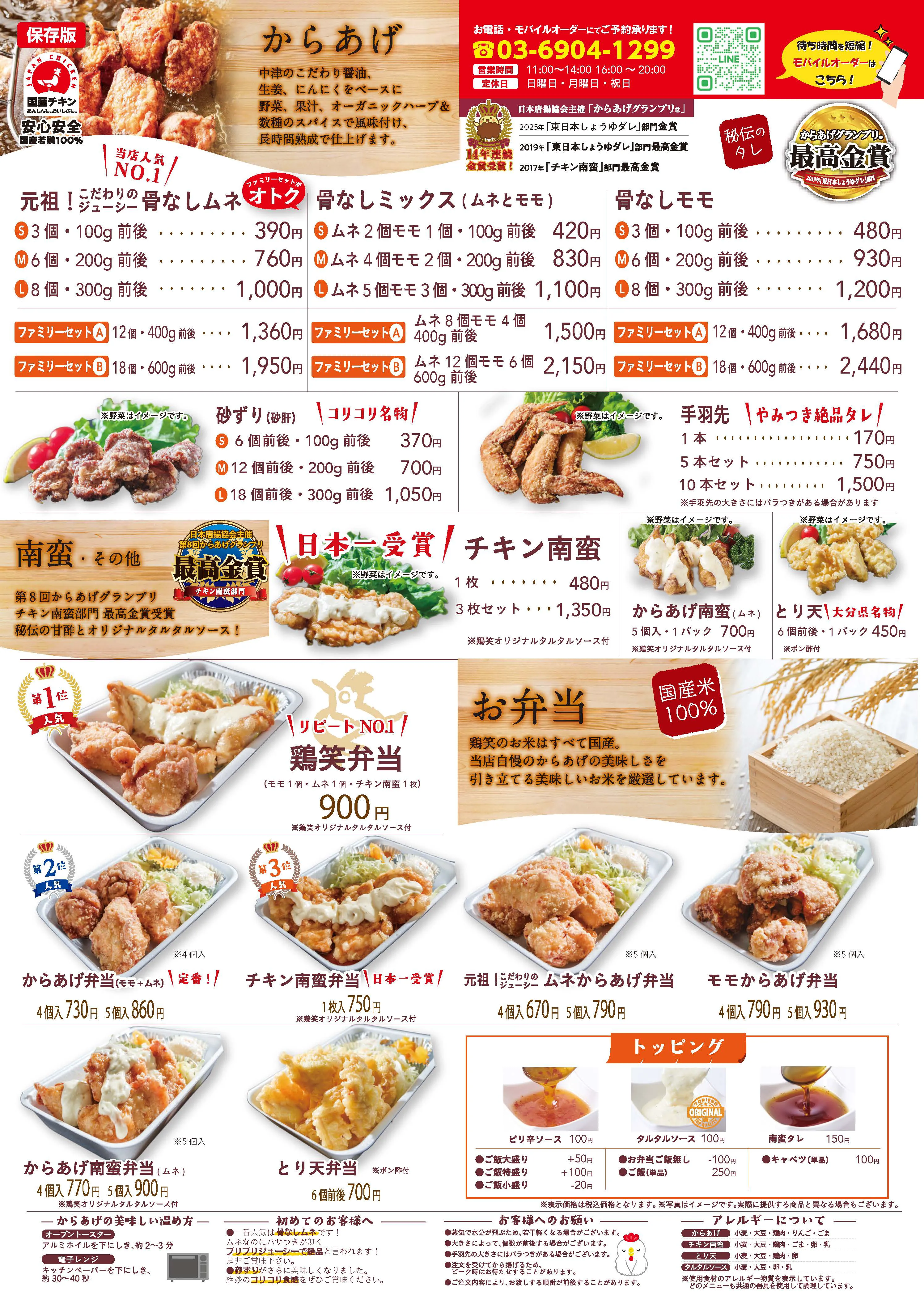 からあげ専門店 鶏笑 浦和本店営業時間外 - 営業開始 火曜日 11:00